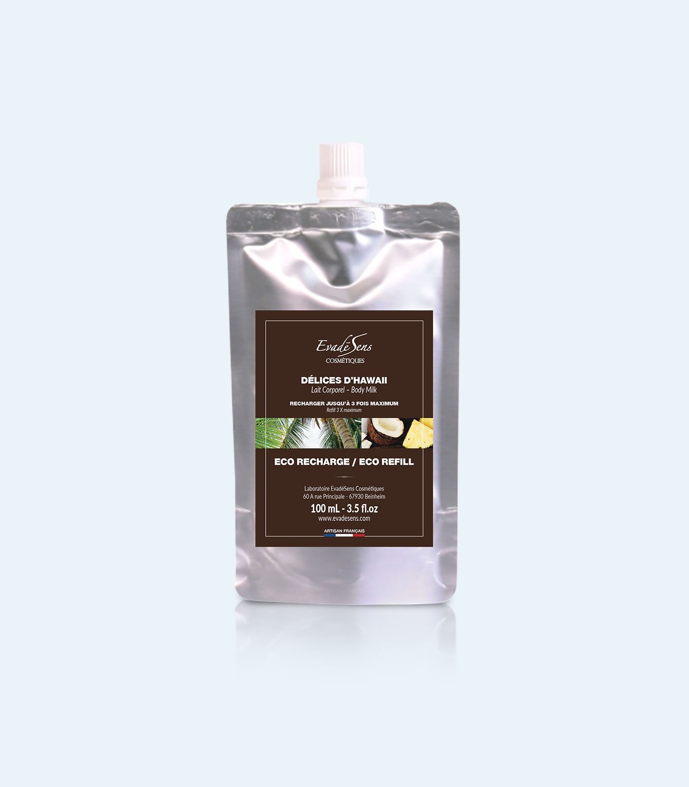 Délices d’Hawaï est un lait corporel à la texture légère et aux fragrances naturelles et gourmandes.